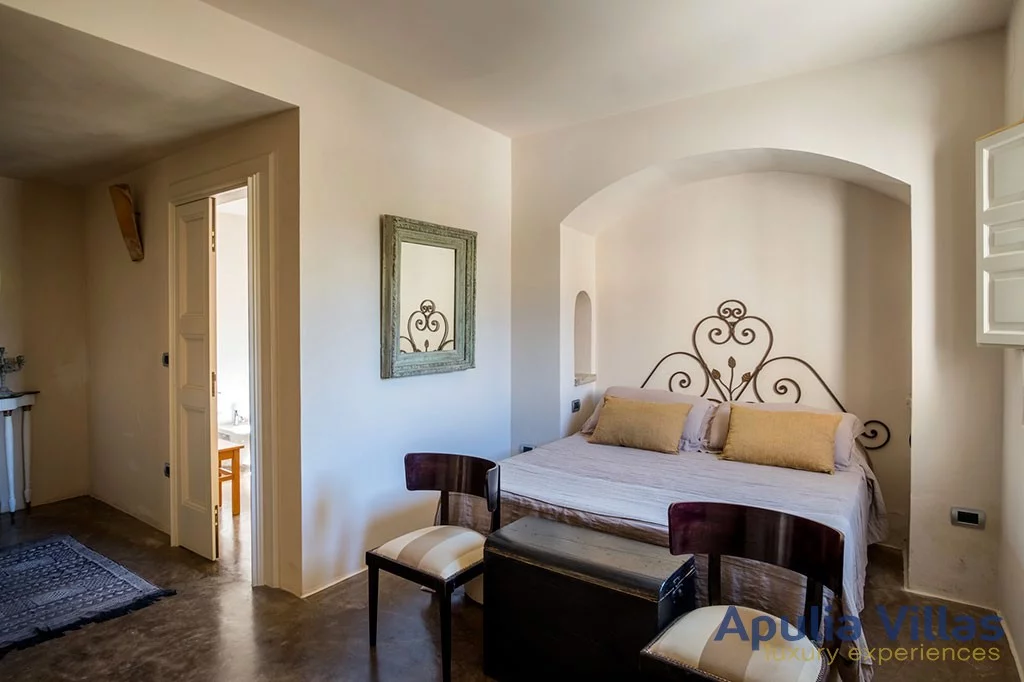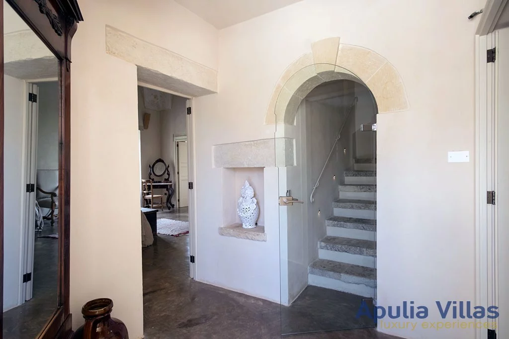 Dating back to 1800, it has been completely renovated. It features four suites, each with a private bathroom and an independent entrance from the courtyard in which the estate is located, as well as two single rooms. All the suites are situated around a central common living room, equipped with a comfortable corner sofa and a majestic white stone fireplace in the local Leccese stone. The four spaces are elegantly and tastefully furnished, ensuring a relaxing vacation experience.