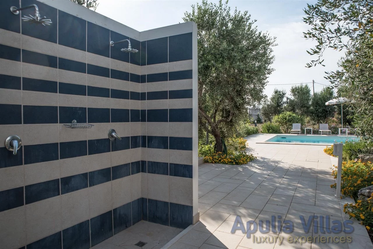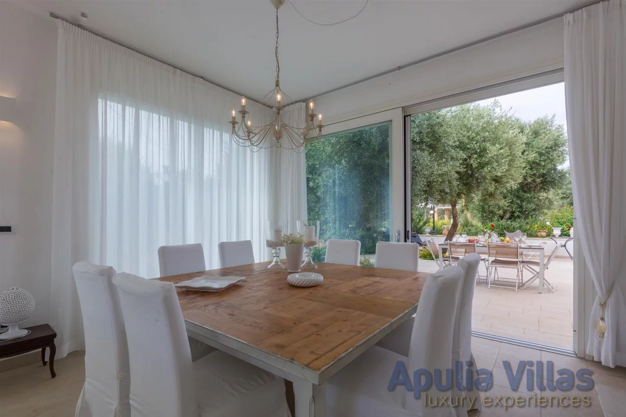 Villa Uxentum is the perfect choice for a relaxing vacation in an elegant and refined setting, surrounded by extensive green spaces and a beautiful pool complete with sun loungers and umbrellas, all less than 2 km from the stunning Ionian coast of Salento.