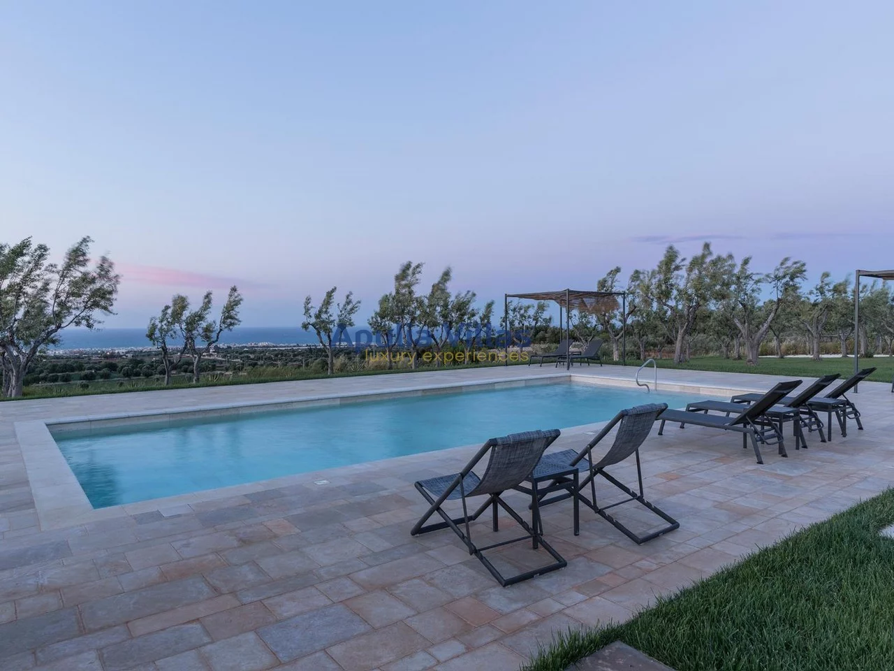 Immersa in oltre 5 ettari di tenuta privata con ulivi secolari, carrubi, orti e agrumeti, la villa offre più di 8000 mq di prato curato, ideale per momenti di assoluta serenità, passeggiate nella natura o semplicemente per rilassarsi all’ombra. Il cuore della vita all’aperto è la piscina (13 x 6 m, profondità 1,40 m) con sistema controcorrente: un’oasi di bellezza e privacy, a pochi metri dalla villa, ma sufficientemente distante per garantire silenzio e intimità. Dal bordo piscina, lo sguardo abbraccia l’orizzonte tra verde, cielo e mare.
