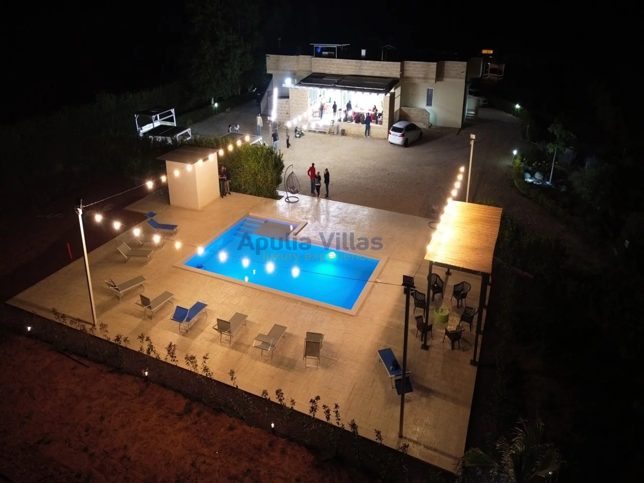 La Villa si trasforma in un'oasi di relax, con una piscina circondata da un solarium, lettini, mobili e sedie da giardino. La struttura è immersa in 3 ettari di terreno coltivato con alberi da frutto, verdure e ortaggi, con certificazione biologica. Tra le colture spicca la presenza di melograni, pianta simbolo del Mediterraneo, che contribuisce a conferire un tocco unico e suggestivo al paesaggio circostante.