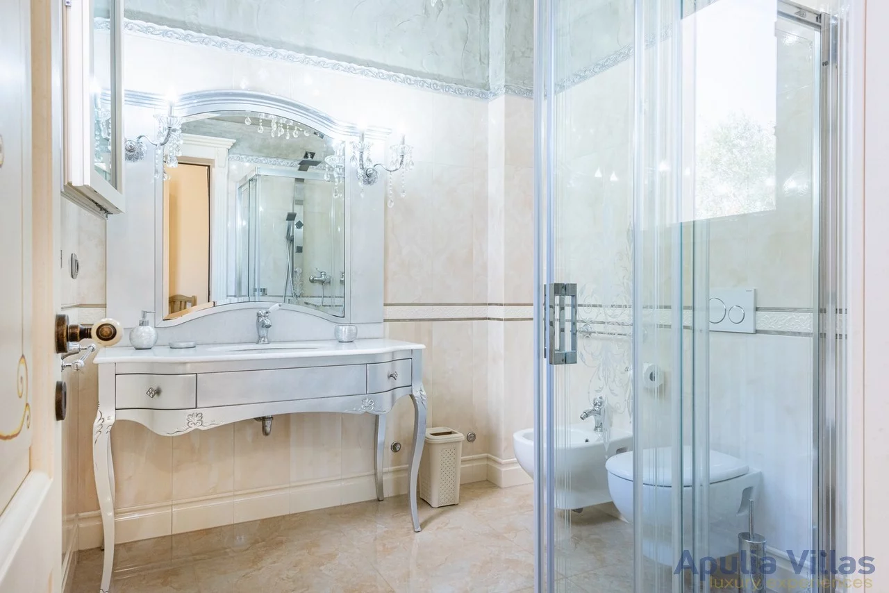 Spaziosa residenza situata a soli 800 metri dalla riva del mare a Castrignano del Capo, immersa in un terreno di 2000 metri quadrati è circondata da uliveti e recintata per garantire la privacy ai suoi ospiti. Questa elegante villa si estende su un unico livello ed è composta da un corpo principale e una graziosa dependance.