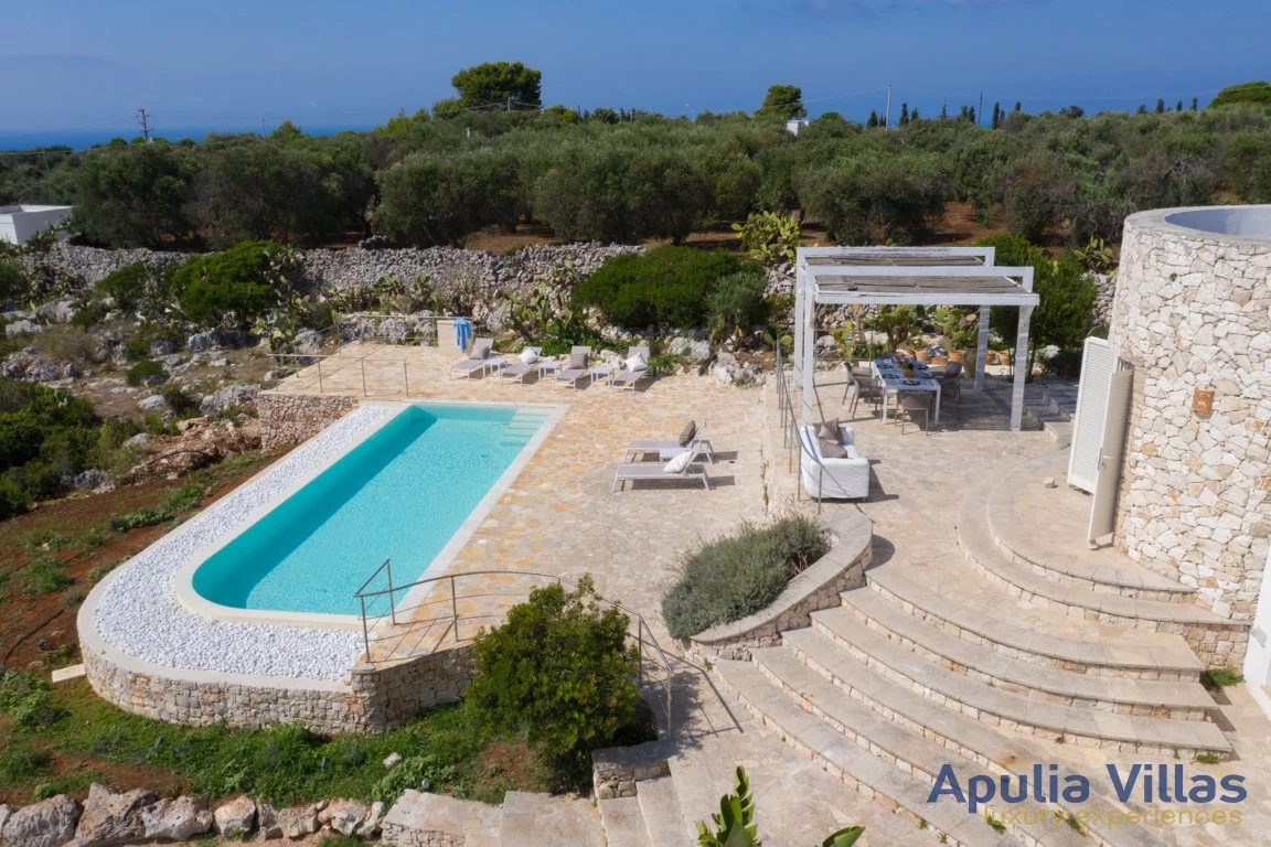 Caratteristica Villa salentina con piscina privata e meravigliosa vista mare a soli 1.5 km dalla spiaggia di Santa Maria di Leuca. Villa composta da 3 camere da letto e 3 bagni, ampio giardino e area solarium.