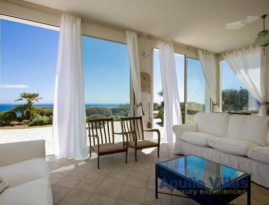 Questa dimora, con la sua architettura elegante e raffinata, si erge maestosa sulla scogliera, dominando l'infinito blu del mare di Santa Maria di Leuca. Al suo interno, un'atmosfera avvolgente accoglie gli ospiti, cullandoli in un abbraccio di comfort e bellezza senza tempo.